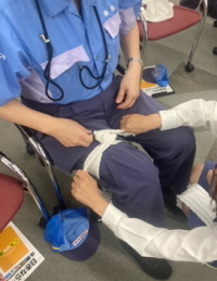 特に、三角巾を使った止血方法や、担架が無い場合の搬送方法など、現場で即応できる技術の習得に重点を置いています。