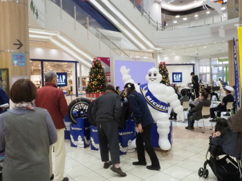 このイベントは、ショッピングに来ていた市民の方々に、警察の方々から交通安全についての説き、警察署の楽団によるコンサートが行われました。日本ミシュランタイヤブースでは、ダメージタイヤと良品タイヤを並べて展示し、正しいタイヤの使い方を来場者に説明しました。
