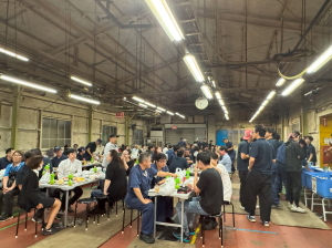 今回の会場は、新工場竣工に伴い設備移動を終えた旧工場跡地です。仕事を終えた社員がそのまま気軽に参加できるように企画され、当日は200名を超える社員が集いました。職場の延長線上に自然な交流の輪が広がり、和やかな雰囲気の中で多くの笑顔が見られました。