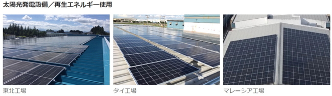 日本国内では東北工場で2019年に新棟建設時に、また海外ではタイ・マレーシア工場にも太陽光発電を設置し、CO₂削減に取り組みました。さらにCO₂フリー電力や非化石証書を購入し、2023年に弊社製造拠点においてカーボンニュートラルを達成しました。