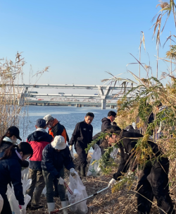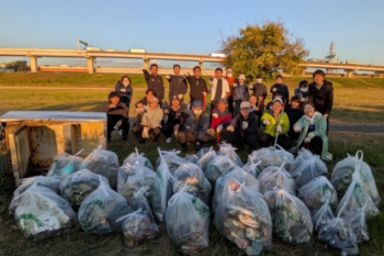 2025年11月に実施した活動には27名が参加しました。講義ではマイクロプラスチックや河川から海へ流出するゴミが生態系に与える影響や、企業が生物多様性に取り組む意義などを学び、「人は普段から水などを通して1週間にクレジットカード1枚分のプラスチックを摂取している」という報告には大きな衝撃を受けました。河川敷での清掃・除草活動では、45L袋29袋の可燃ごみ、瓶・缶10袋、粗大ごみ1点、注射器7本を回収しました。