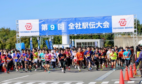 豊田合成では、2025年11月16日に、当社の平和町工場内で「第9回全社駅伝大会」を開催しました。
