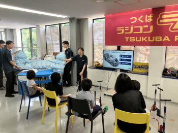 8 月に開催される「つくばラジコンパーク」主催の小学生向けラジコン交通安全教室の運営に協力しています。つくば市内の小学生がラジコンカーを通じて、 交通事故の危険性、シートベルトやエアバッグがどのように命を守っているかを学び、交通安全の重要性を体験できるイベントです。 |